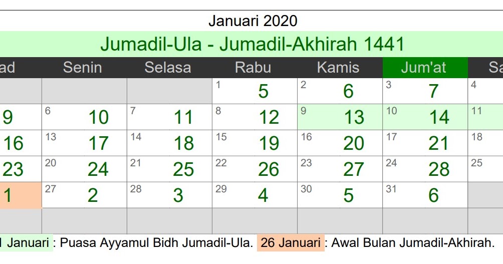 Download Kalender Islam Hijriyah Tahun 2020 Masehi 1441 ...
